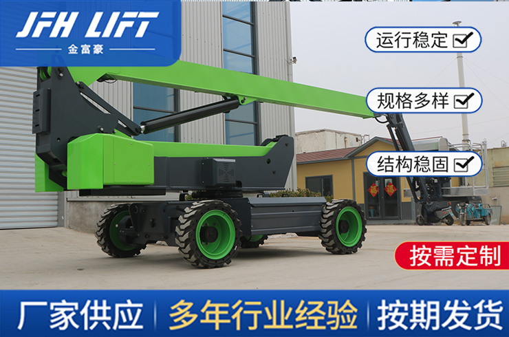 曲臂式升降作業(yè)平臺供室內(nèi)外高空作業(yè)使用。具有自行走、自支腿、操作簡單、使用方便、作業(yè)面大,特別是能夠跨越一定障礙或在一處升降可進(jìn)行多點(diǎn)高空作業(yè)的特點(diǎn)。廣泛用于公路、碼頭、商場、體育場館、小區(qū)物業(yè)、廠礦車間大范圍作業(yè)。動力可選擇柴油機(jī)、電瓶、柴電兩用。